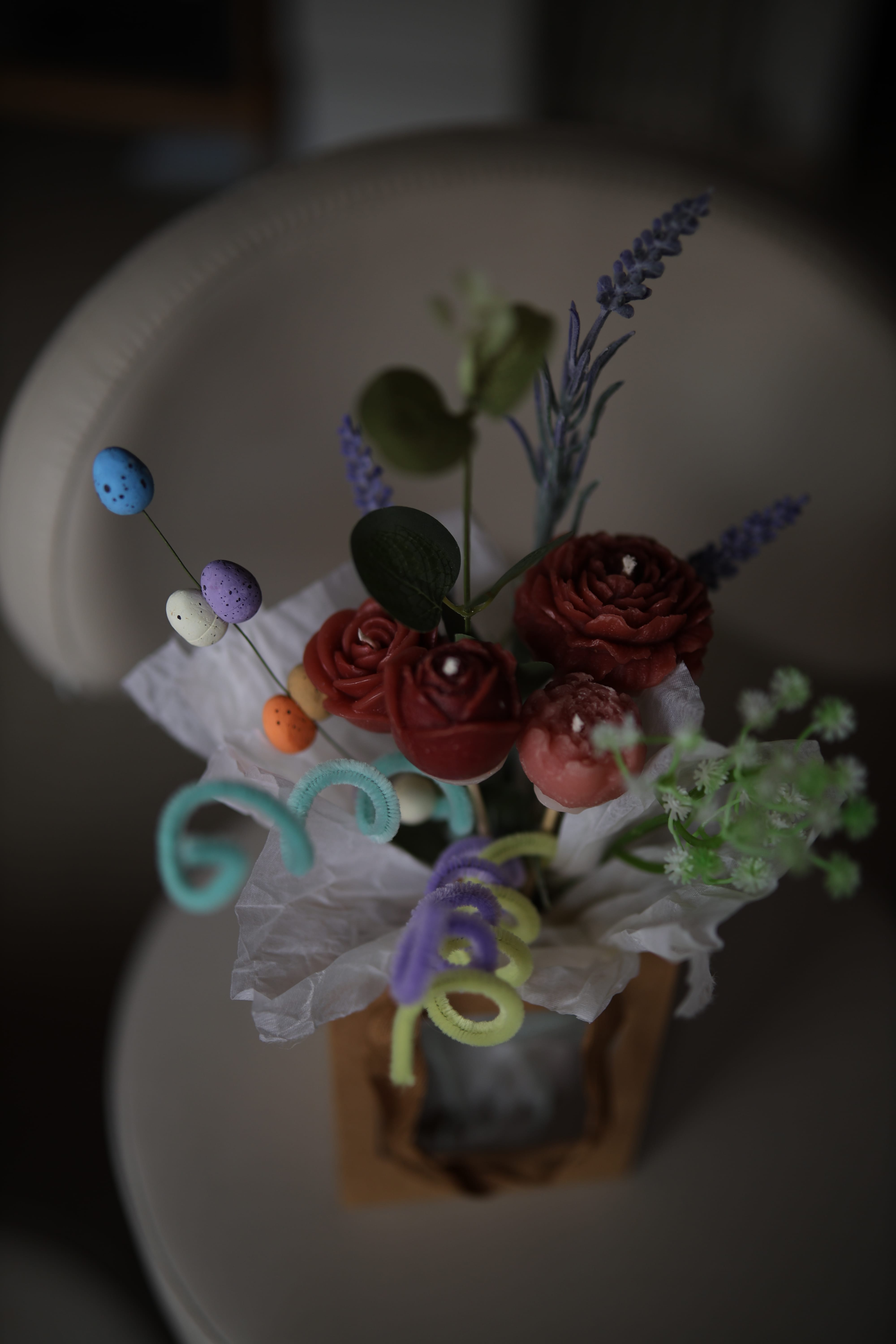 At the end of the workshop, you will take home your handmade candle flowers bouquet.